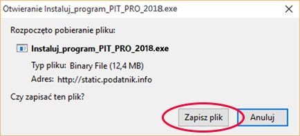 Kliknij w „zapisz plik”, by pobrać darmowy Program PIT pro 2025 w kilka sekund.