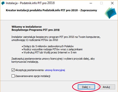 Kliknij ikonkę „Uruchom” i rozpocznij proces instalacji programu.